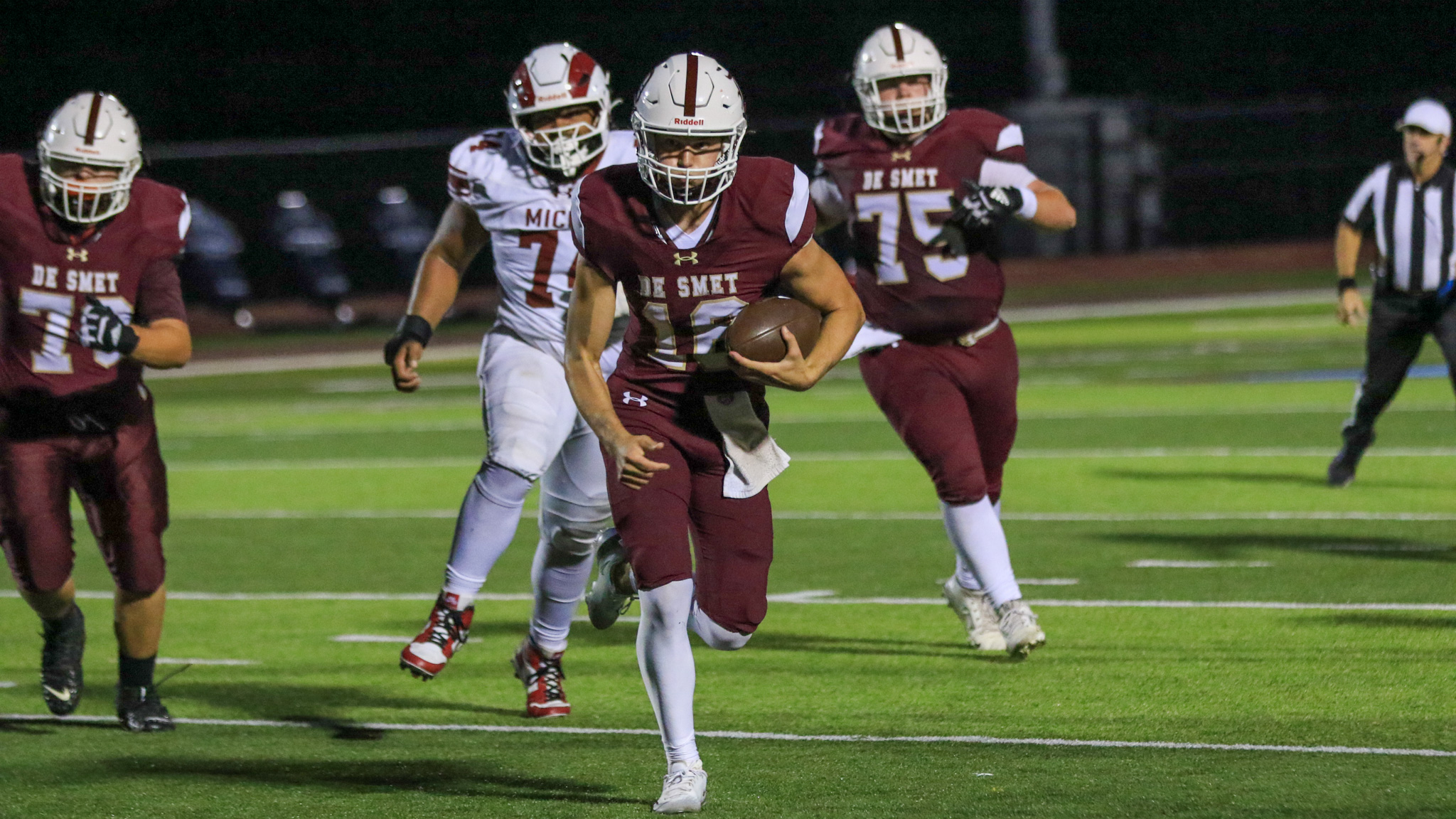 MICDS (0-2) began to find an offensive rhythm late in the first half. Quarterback Noah Menneke, who completed only three of his first 10 passes, went 4-for-4 during a second quarter drive that included connections to Henry Rohan for 15 yards and LJ Triplett for 13, before rolling left and finding Triplett behind the De Smet defense for a 24-yard touchdown.
