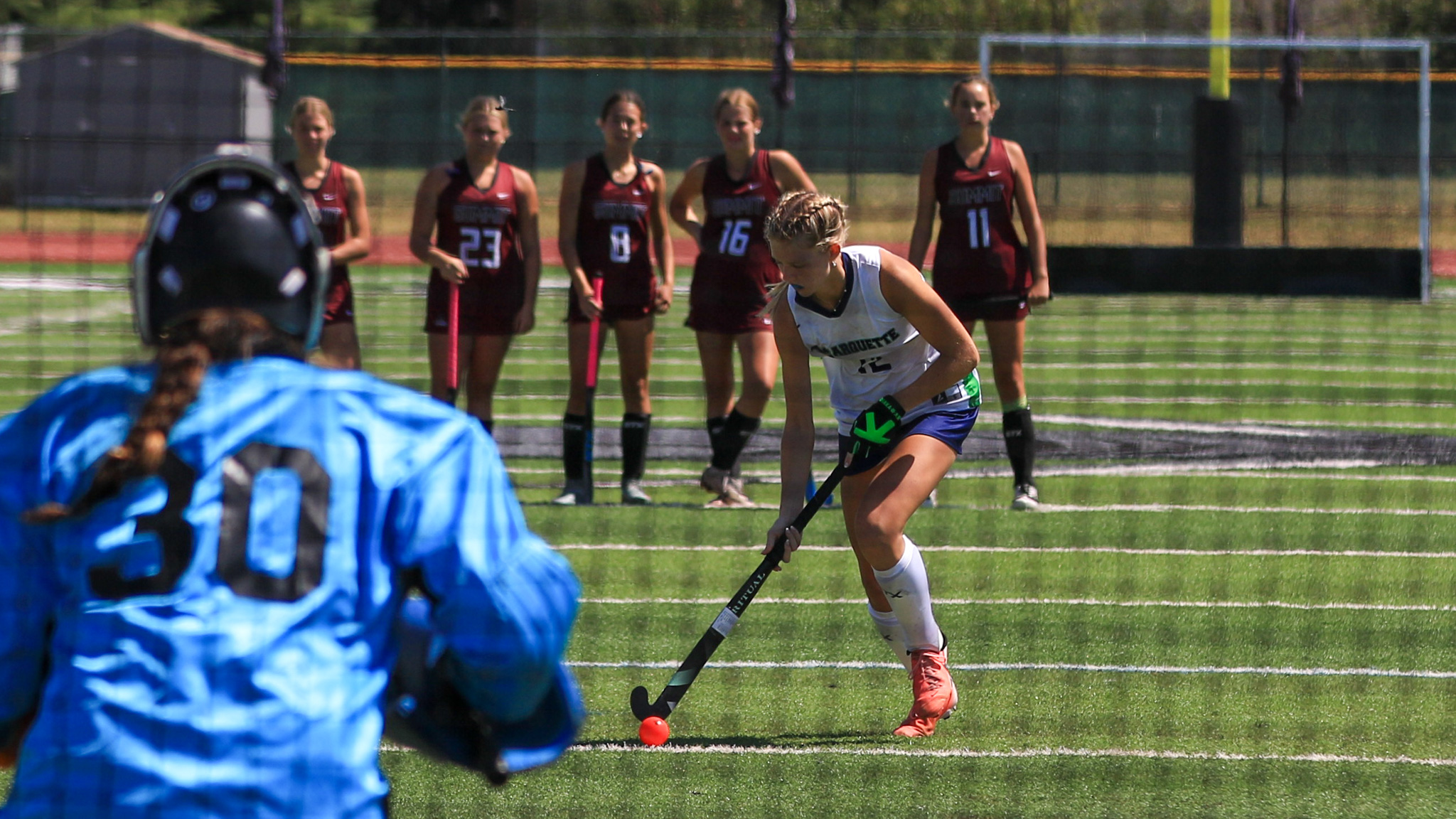 Emma Vendt, senior, Marquette (feature photo)– The offensive engine for the Mustangs, Vendt put on a show in leading Marquette to the Lafayette Tournament title. She scored the only goal in a 1-0 semifinal victory over the host school, then potted two goals and connected during 1v1s in the championship showdown with Summit.