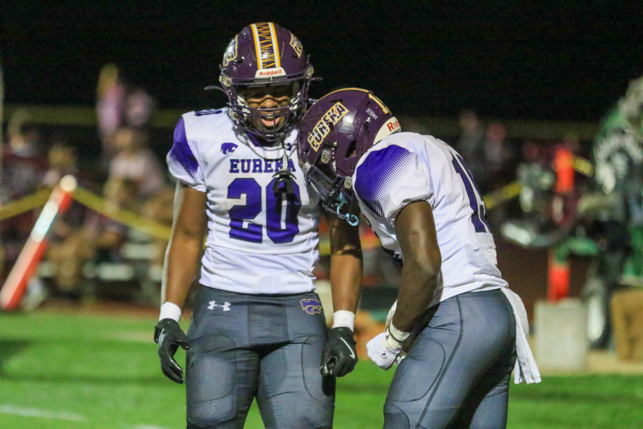 FENTON- Junior Brandon Webb and sophomore Curtis Harris often occupy the Eureka backfield at the same time. When one accepts a handoff, the other leads the way through the hole. Each takes pride in the other’s success, almost as if they were members of the same family.